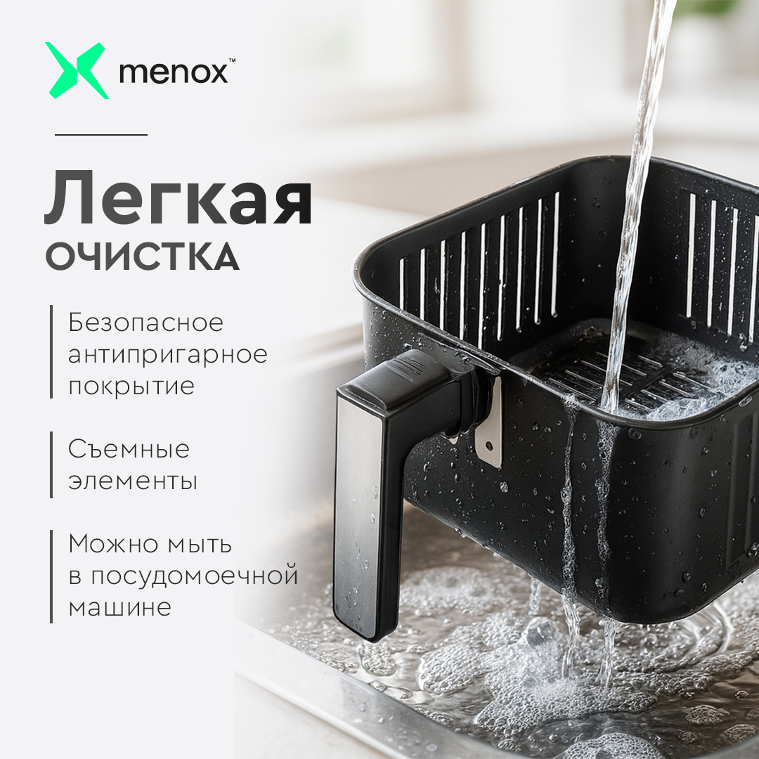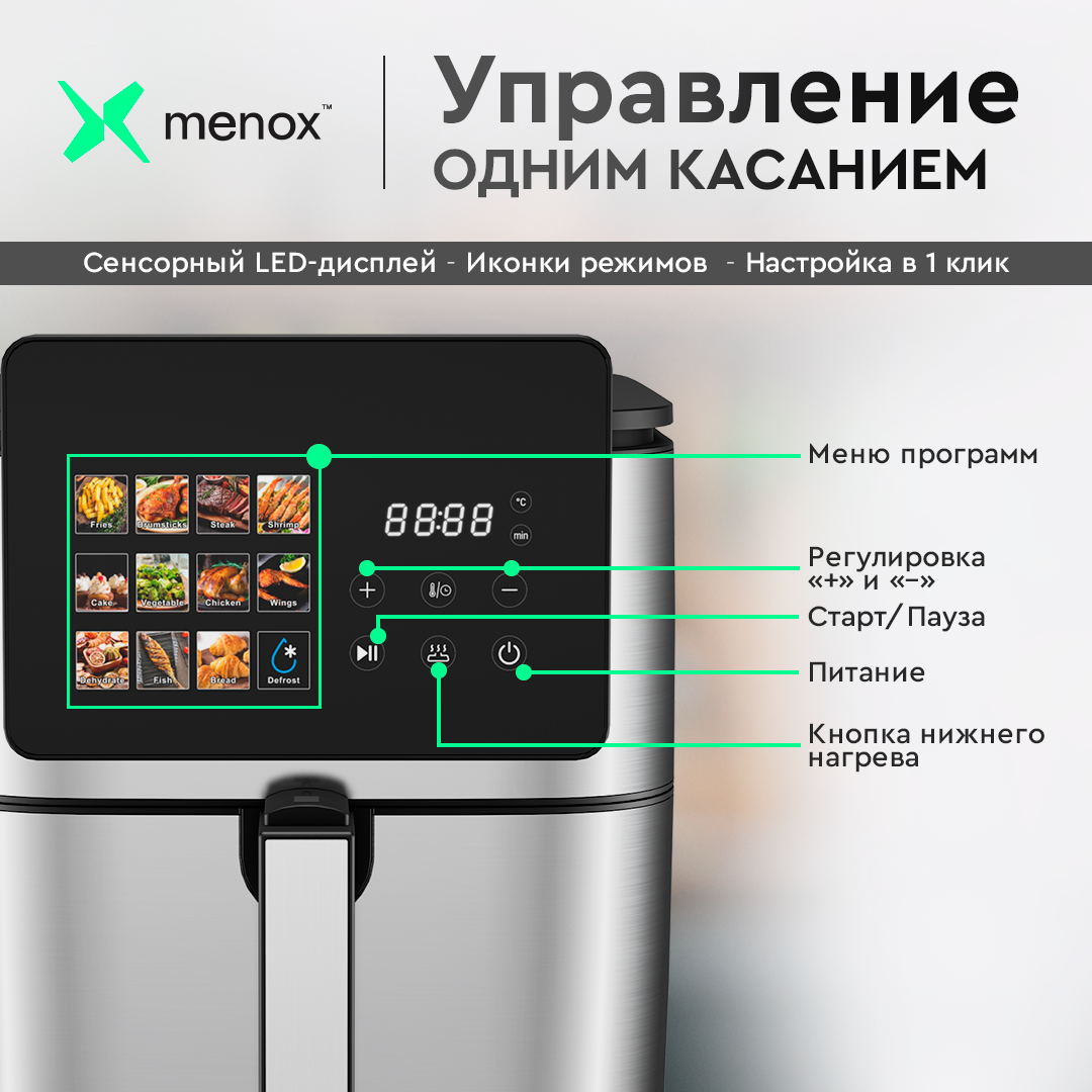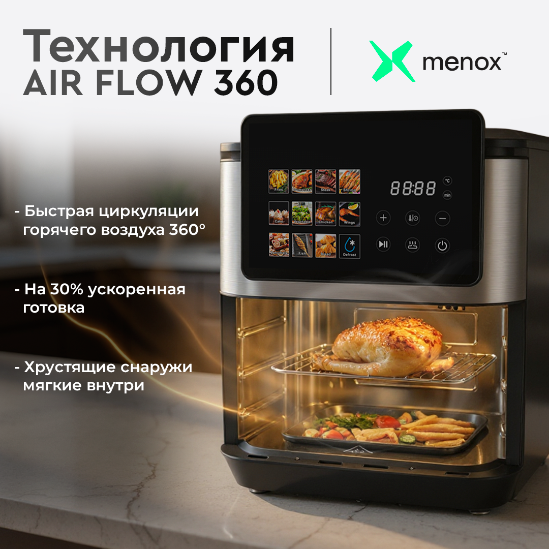 Menox AG-01 — современный многофункциональный аэрогриль для быстрого и полезного приготовления блюд. Высокая мощность, равномерная циркуляция горячего воздуха и автоматические программы позволяют готовить вкусно, быстро и без использования масла.