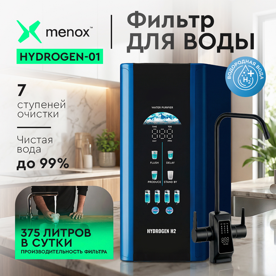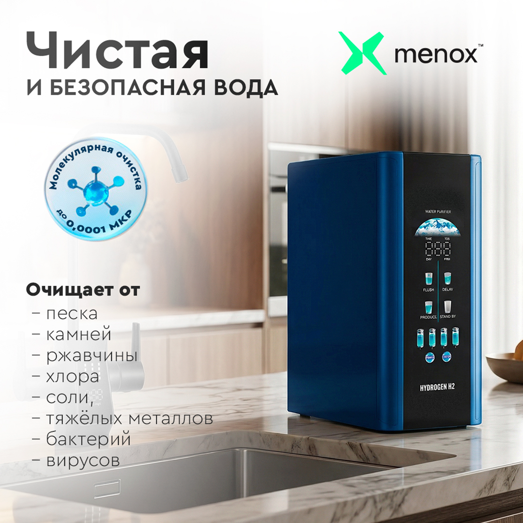 Menox Hydrogen-01 — современная система обратного осмоса с функцией минерализации и водородного обогащения воды. Подходит как для одного пользователя, так и для большой семьи, обеспечивая чистую, безопасную и вкусную воду каждый день.