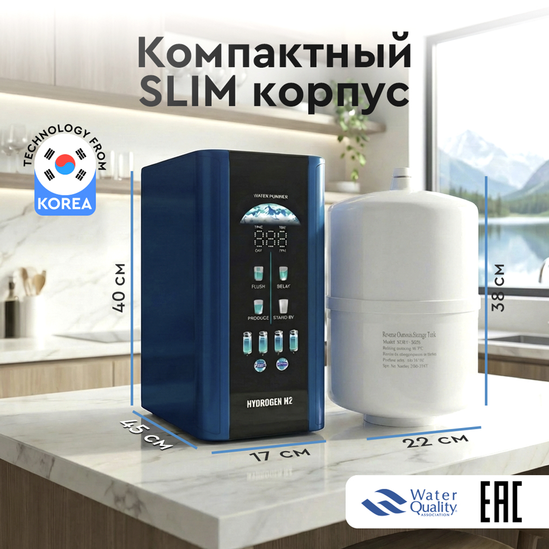 Стильный и компактный корпус легко устанавливается под мойку или в ограниченном пространстве.