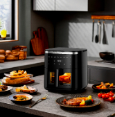 Он готовит быстрее, безопаснее и экономичнее, используя циркуляцию горячего воздуха вместо открытого огня. Устройство жарит, запекает, тушит и разогревает без запаха газа и лишнего жира